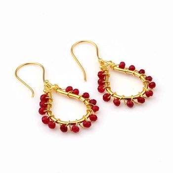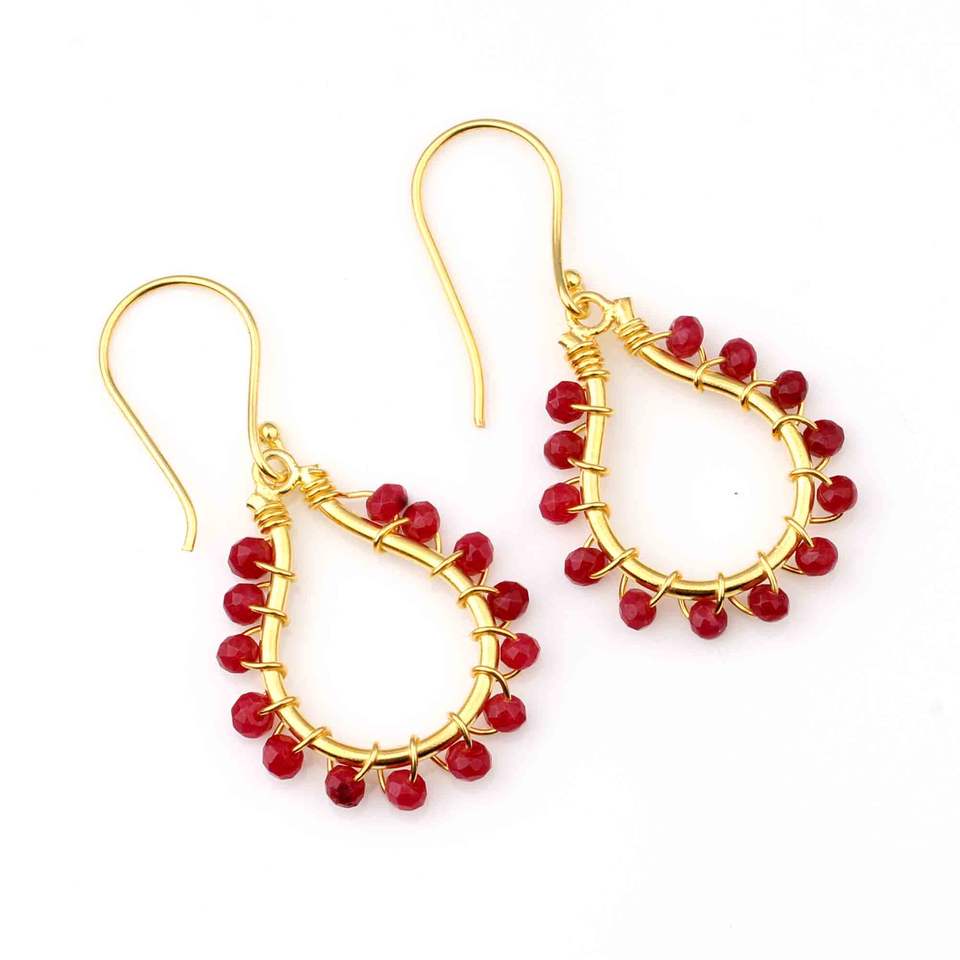 ชื่อผลิตภัณฑ์:หินทับทิมย้อมสี925เงินสเตอร์ลิงต่างหูประดับลูกปัดชุบทอง