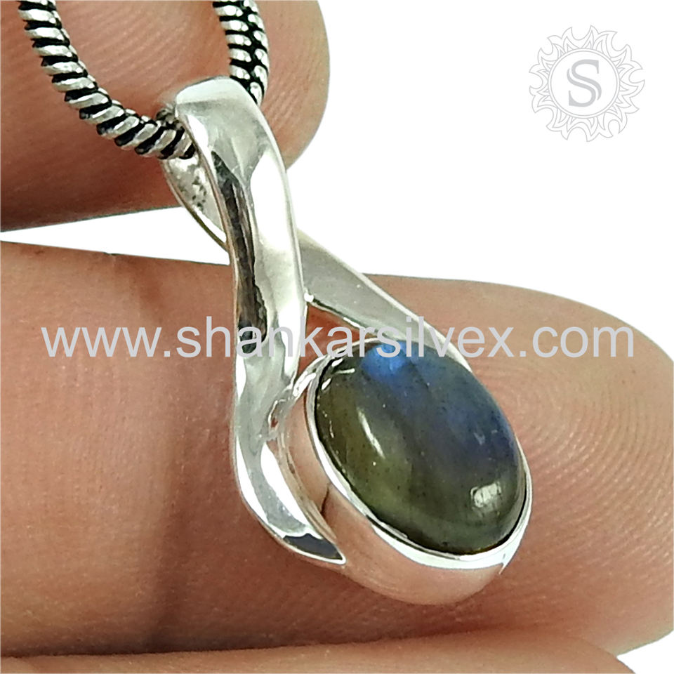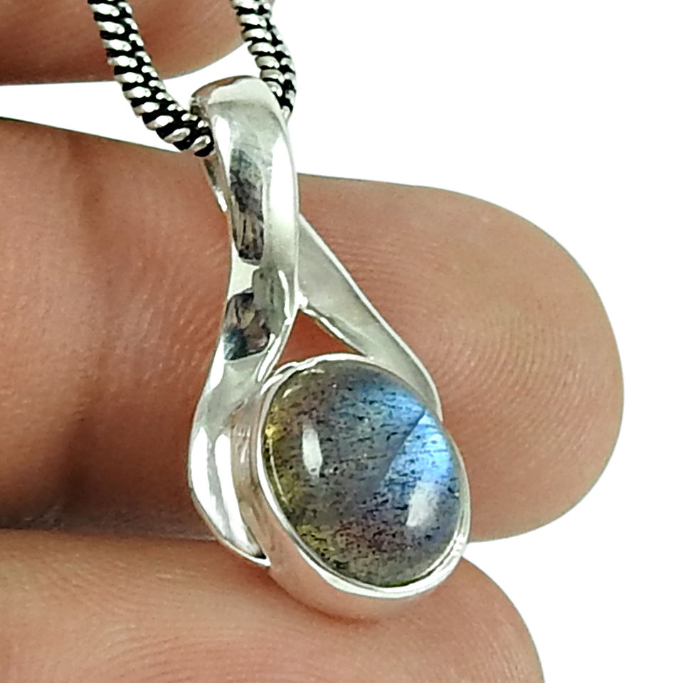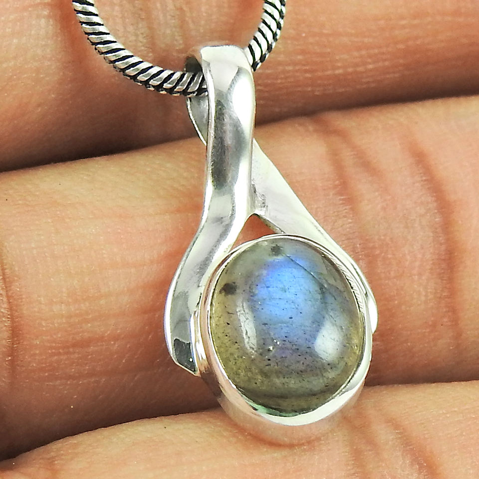 Top Quality 925 Sterling Silver Natural Labradorite Gemstone Oval Shape Pendant Custom Design Boho Jewelry Manufacturer Exporter