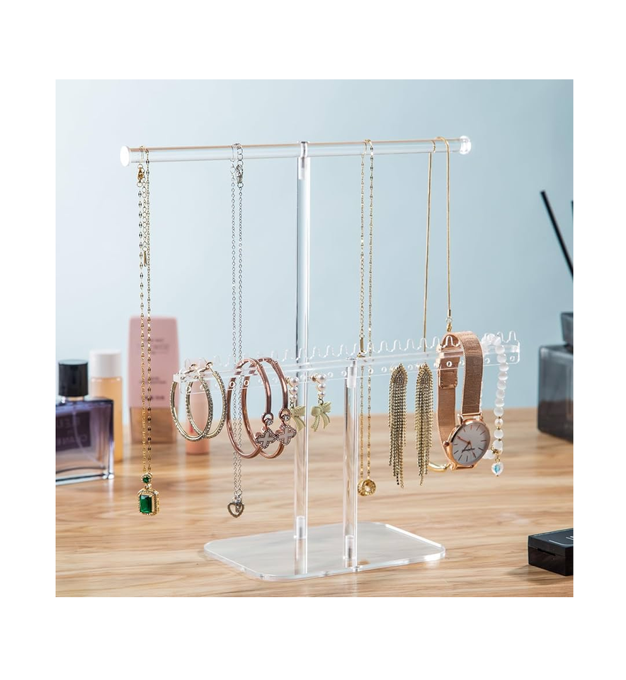 ชั้นวางแสดงเครื่องประดับทรงทีบาร์ทำจากอะคริลิกที่มีความต้องการสูงสุด