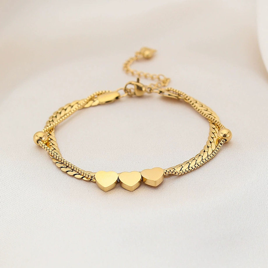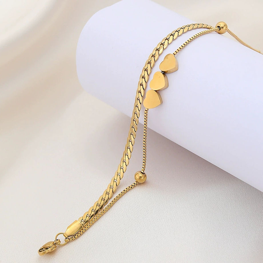 สร้อยข้อมือสแตนเลสสตีลชุบทอง 18k คุณภาพสูง ปรับขนาดได้ รูปหัวใจ สำหรับผู้หญิง แฟชั่น สร้อยข้อมือแบบโซ่ เหมาะสำหรับเป็นของขวัญ