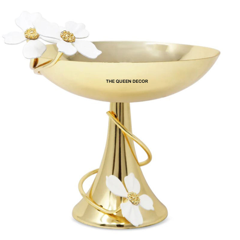 Top Quality Aluminum Metal Oval Shape Side Leaf Flower Joint Gold Finish Decorative Bowl Serving Accessories