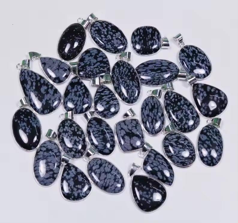 เครื่องประดับแฟชั่นเกล็ดหิมะหินออบซิเดียนเกล็ดหิมะจากธรรมชาติที่ยอดเยี่ยม