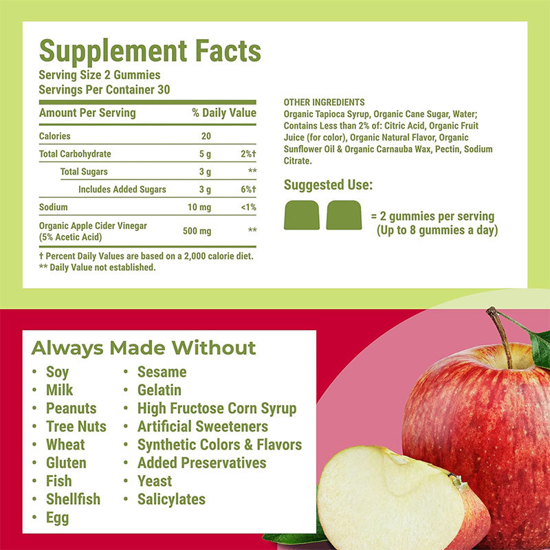 ส่วนผสมหลัก:น้ำส้มสายชูแอปเปิ้ลไซเดอร์, วิตามิน