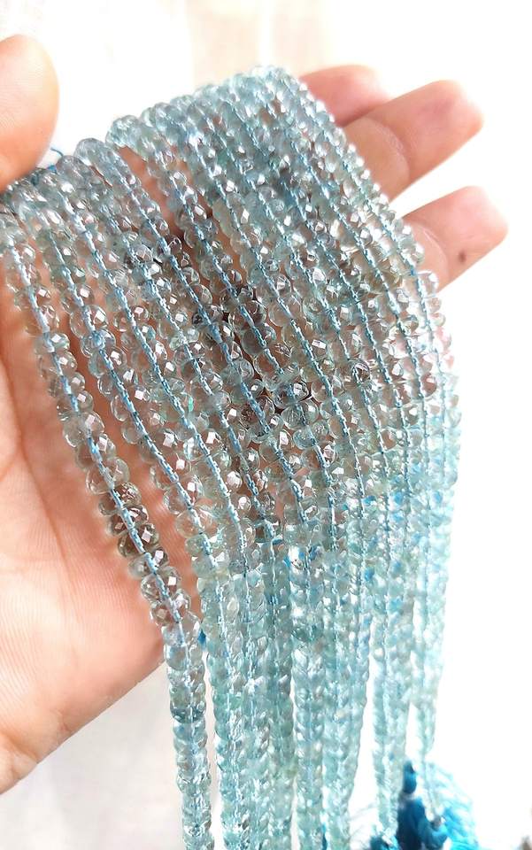 ลูกปัดหินอัญมณีสีฟ้าเหลี่ยมเพชรพลอยขนาด4-5มม. ลูกปัดหลวมสำหรับทำเครื่องประดับ