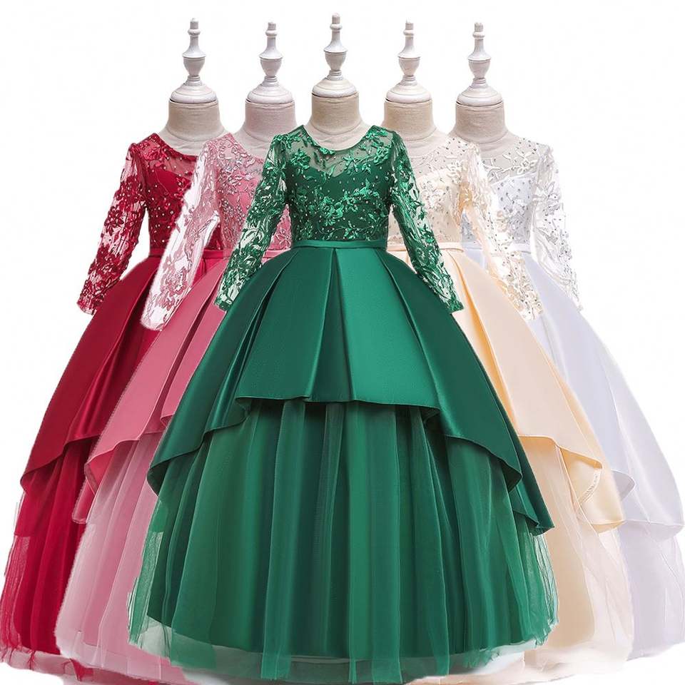 คำอธิบาย:ชุดเดรสออกงานสำหรับเด็กผู้หญิง ไซส์พิเศษ ลูกไม้ แขนยาว แม็กซี่เดรส