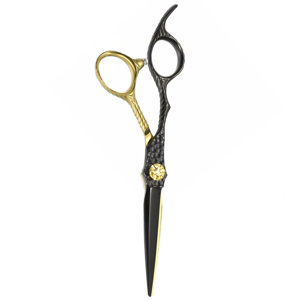 กรรไกรตัดผมปลายแหลมสีดำและสีทองด้ามจับดีไซน์สวย