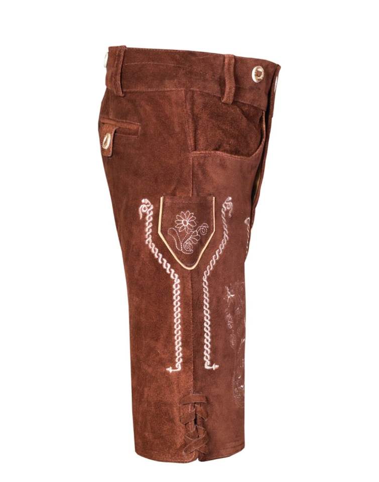 Lederhosen สั้นผู้ชายหนังวัวแท้หนังนิ่มปักด้านหน้ากระเป๋าด้านหลังขนาดกลางน้ำหนักเบา