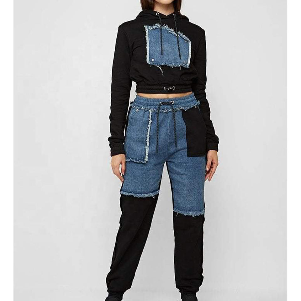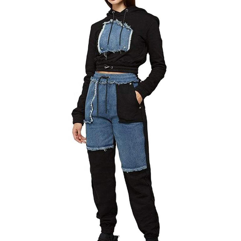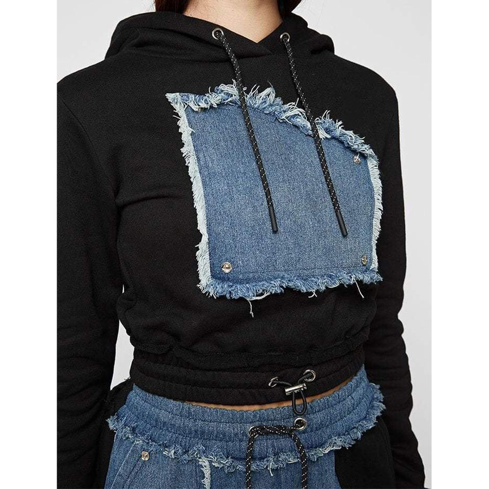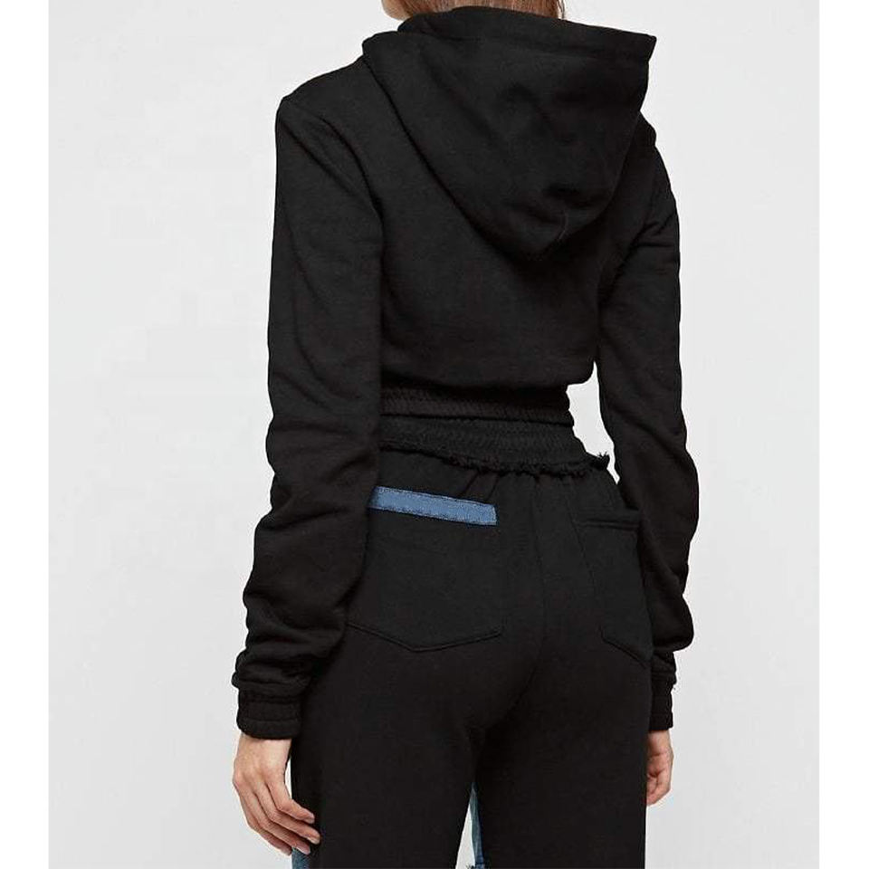 เสื้อครอปมีฮู้ดสำหรับผู้หญิงผ้าฟลีซผ้าฝ้ายสีดำสวมใส่สบายแห้งเร็ว