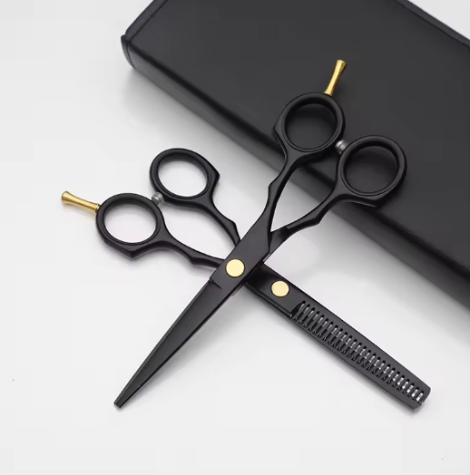 กรรไกรตัดผมคุณภาพสูงสีดำทอง สำหรับมืออาชีพ ทำจากสแตนเลส ยี่ห้อ Ariston international