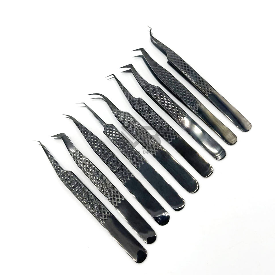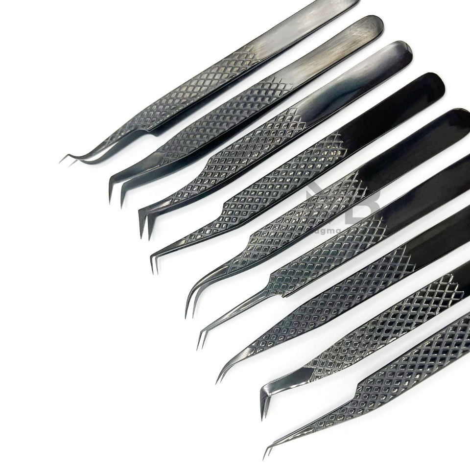 แหนบต่อขนตาคุณภาพสูงสีดำ ปลายแหลมแบบเพชร ผลิตจากเหล็กกล้าไร้สนิมญี่ปุ่น พร้อมชื่อแบรนด์ตามสั่ง