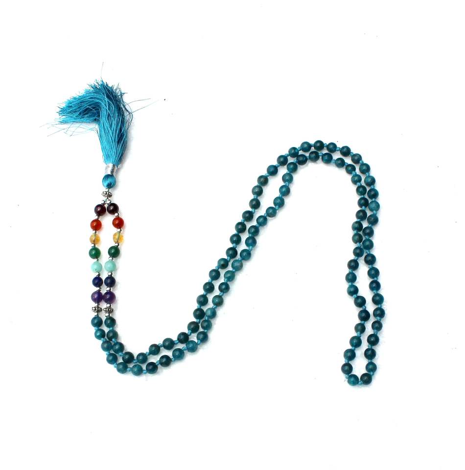 ลูกปัดมาลาสร้อยคอ108คริสตัลสีฟ้าบำบัดมีปมือสำหรับเป็นของขวัญแฟชั่นคลาสสิก