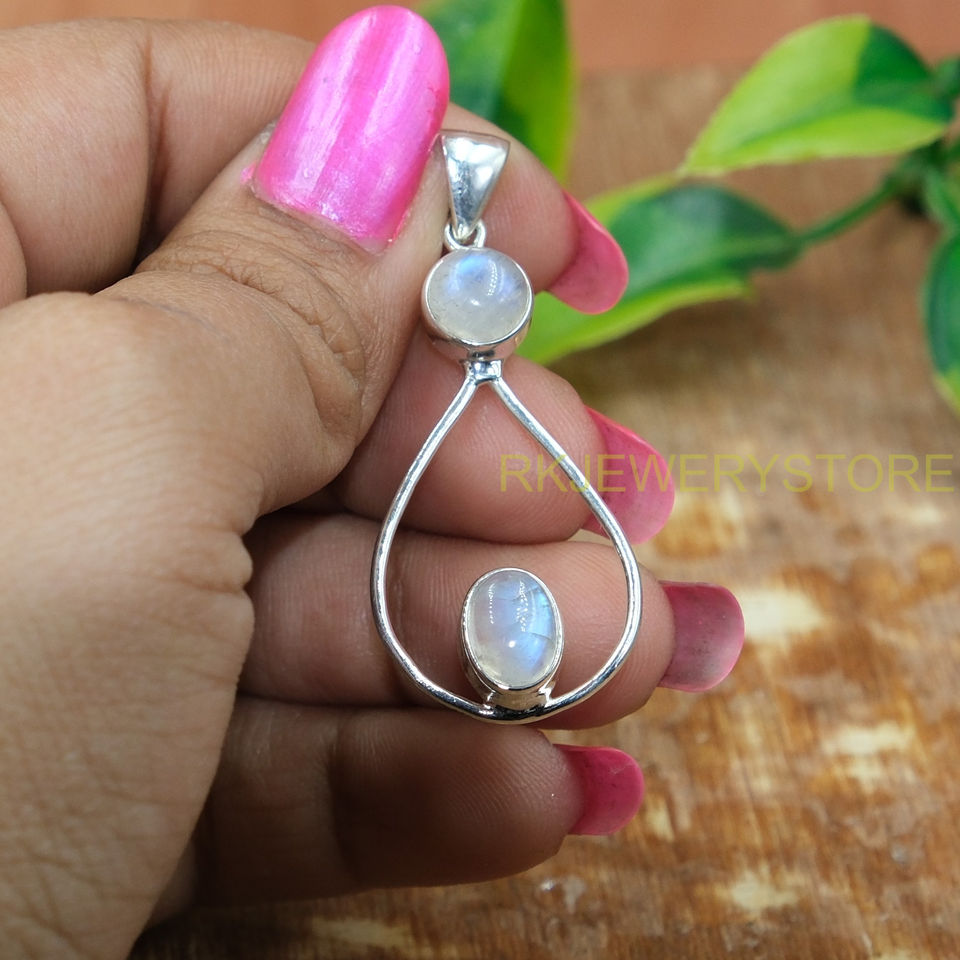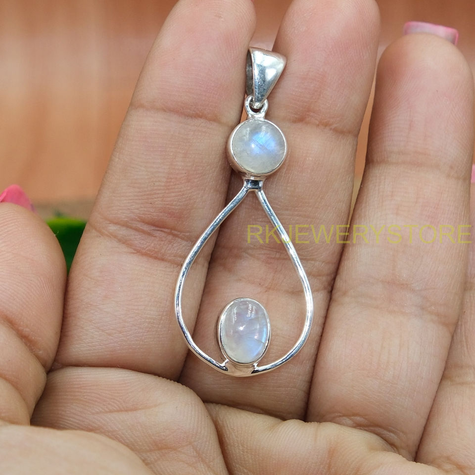 จี้สร้อยคอพลอยมูนสโตนสีน้ำเงินคุณภาพสูง ตัวจี้เงินแท้ 925 เครื่องประดับมูนสโตน ของขวัญคริสต์มาสสำหรับภรรยา