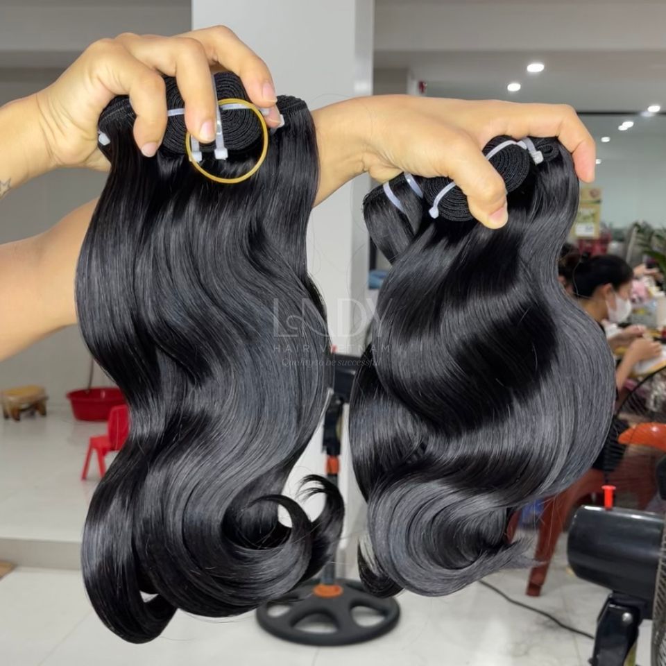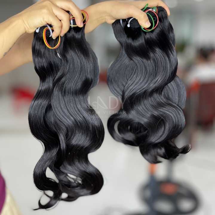 ผมดิบจากผมจริงมัดเป็นลอนสีดำ