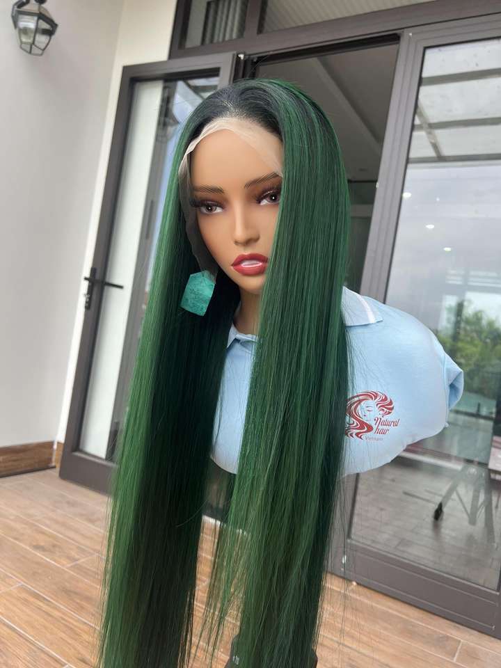 วิกผมตรงสีเขียววิกผมแท้แบบชาวเวียดนามสำหรับวิกผมแท้จาก100%