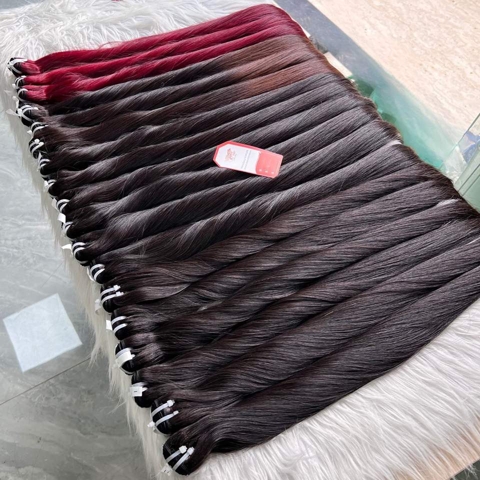 มัดผมเรมมี่ตรงจากเวียดนามผมดิบเบอร์กันดีสีธรรมชาตินุ่มลื่นบริการ ODM