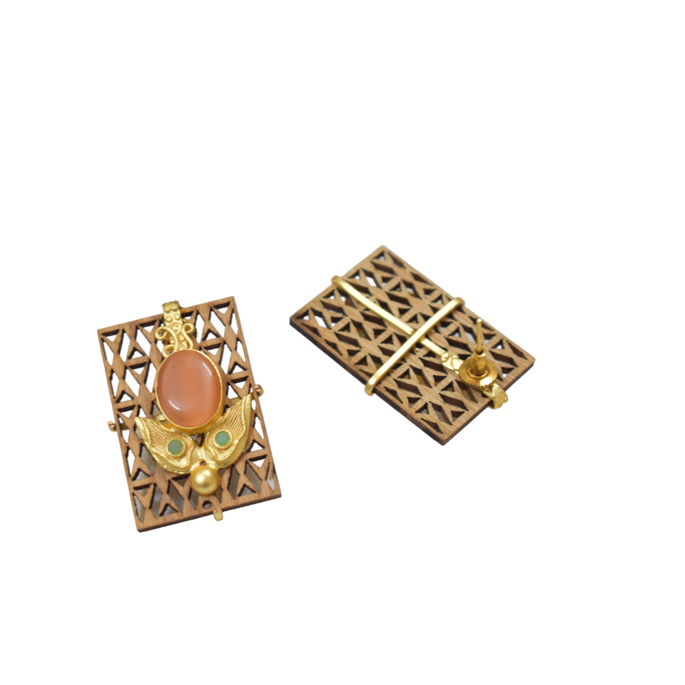 เครื่องประดับต่างหูหินทำจากทองเหลืองทำจากไม้ธรรมชาติสำหรับเด็กผู้หญิงและผู้หญิงมีจำหน่ายในอินเดีย