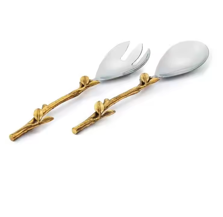 ช้อนทองเหลืองด้ามใบไม้สำหรับบ้านและร้านอาหาร