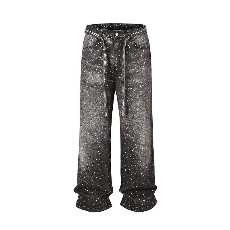 กางเกงยีนส์เดนิมคุณภาพสูง ระบายอากาศได้ดี เป็นมิตรกับสิ่งแวดล้อม ผ้าฝ้ายพรีเมียม 100% กางเกงผู้ชายลายพิมพ์โบว์ผูกเชือก