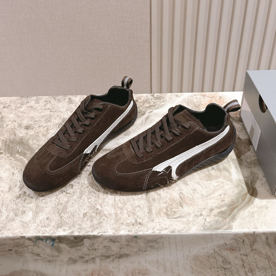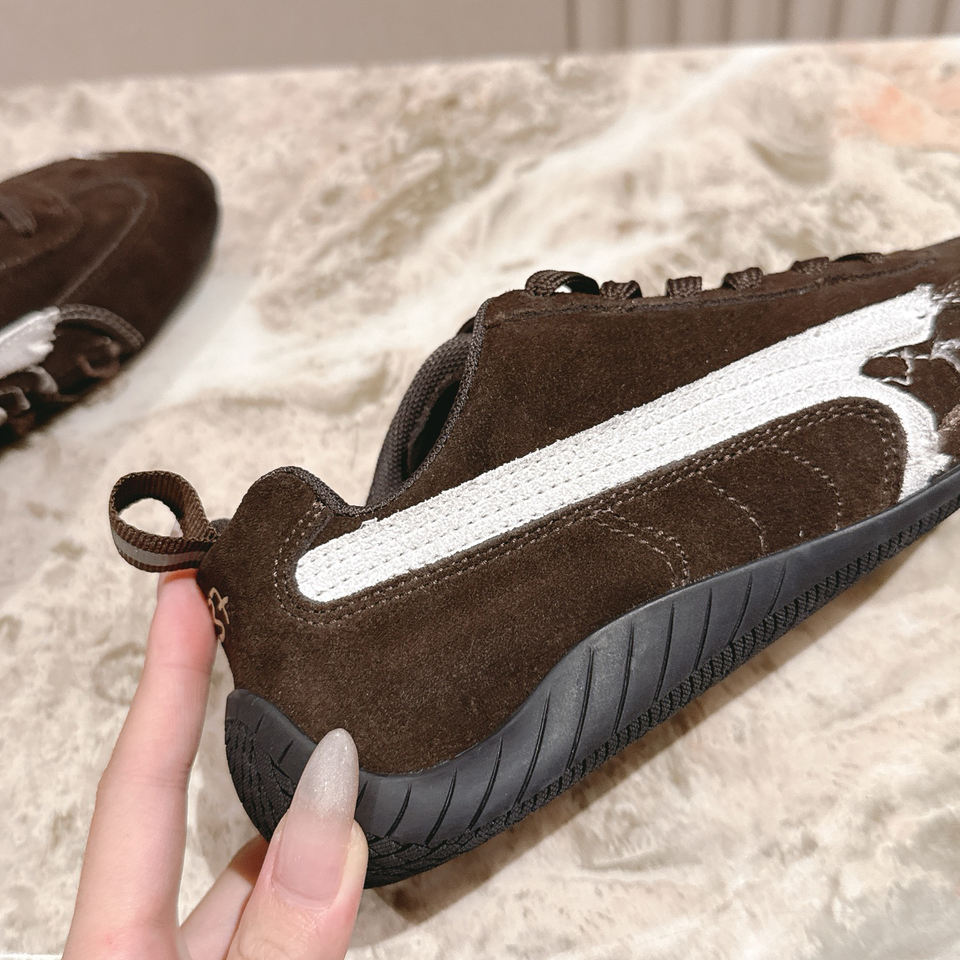 รองเท้าผ้าใบหนังกลับสีน้ำตาลคุณภาพสูงแบบหุ้มข้อต่ำ ขายส่ง รองเท้าลำลองลายแถบข้างสีขาว ผู้จำหน่ายขายส่ง
