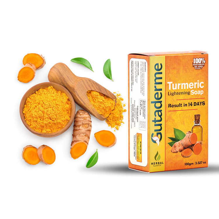 Gutaderme สบู่ขมิ้นแบบแท่งสบู่ก้อนก้อนก้อนทำจากสมุนไพรธรรมชาติช่วยให้ผิวกระจ่างใส