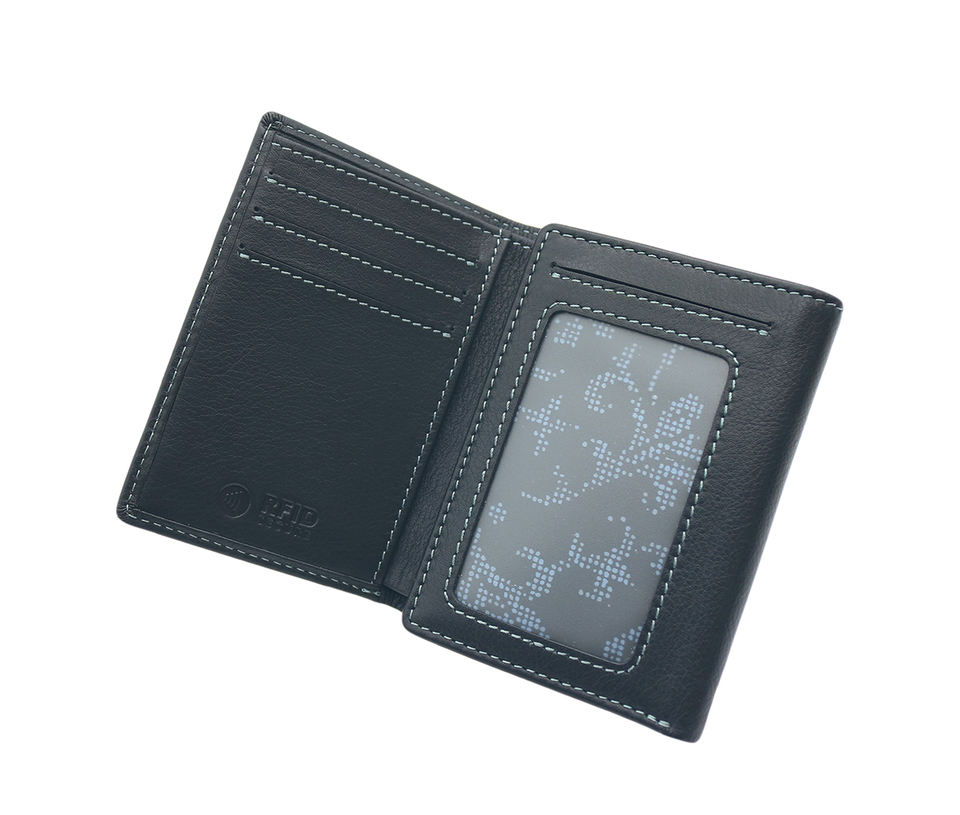 กระเป๋าสตางค์หนังวัวแท้ Castello คุณภาพสูง แบบสามพับ สำหรับผู้ชาย สีดำ ป้องกัน RFID