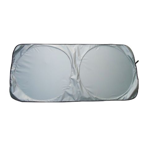 แผ่นบังแดดหน้ารถยนต์คุณภาพสูง ราคาประหยัด ป้องกันแสงแดด สีเงิน โพลีเอสเตอร์ วงกลมคู่ ดีไซน์สวยงาม ผลิตตามสั่ง