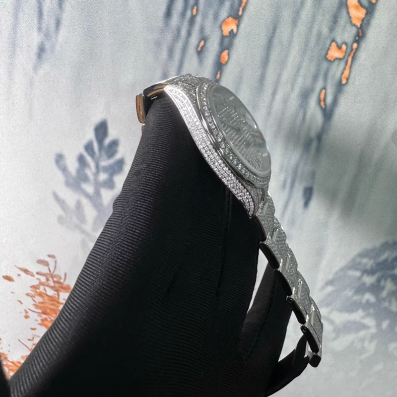 นาฬิกาเพชรหรูหราอัตโนมัติสไตล์อาหรับสำหรับผู้หญิง VVS Moissanite