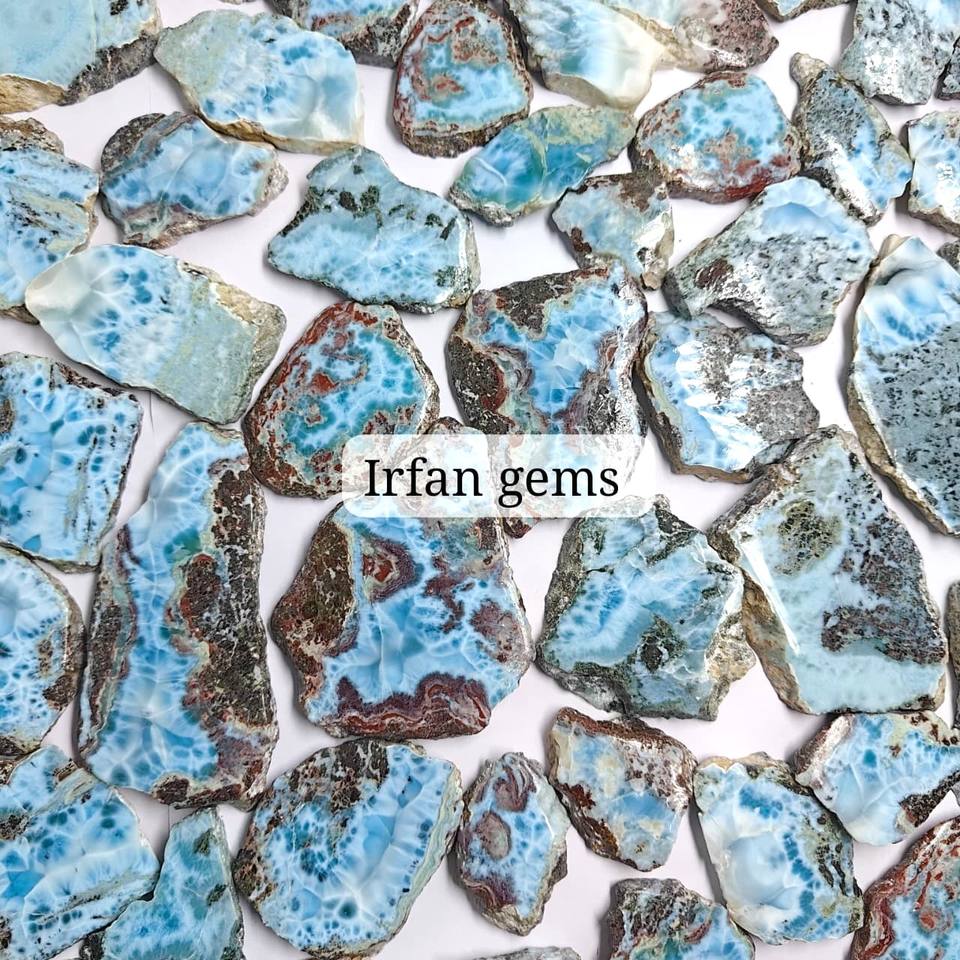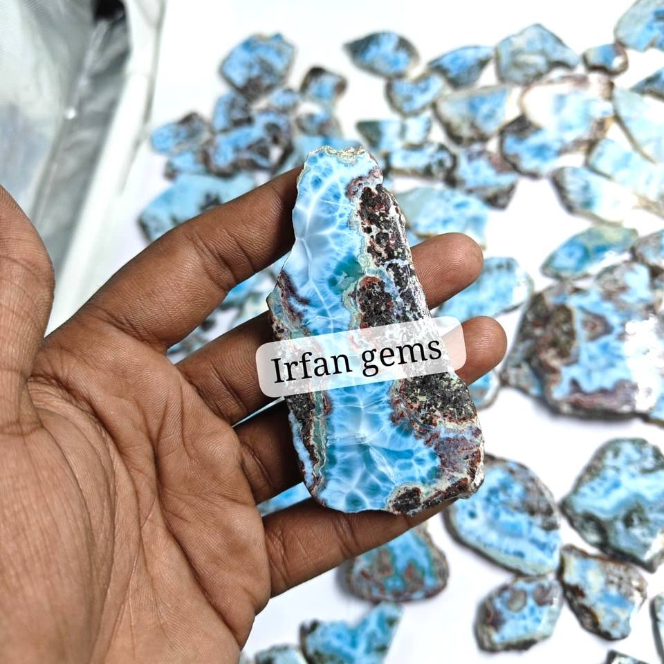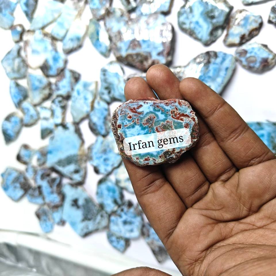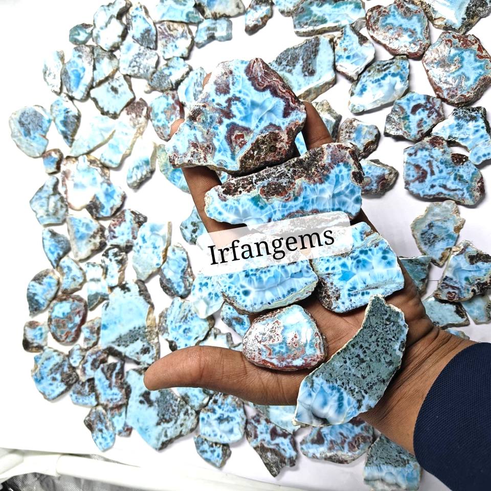 ลาริมาร์คุณภาพสูงแบบแผ่น ราคาขายส่ง จำนวนมาก สำหรับทำเครื่องประดับ หินลาริมาร์รูปทรงผสม จำนวนมาก IRFAN GEMS คริสตัลลาริมาร์