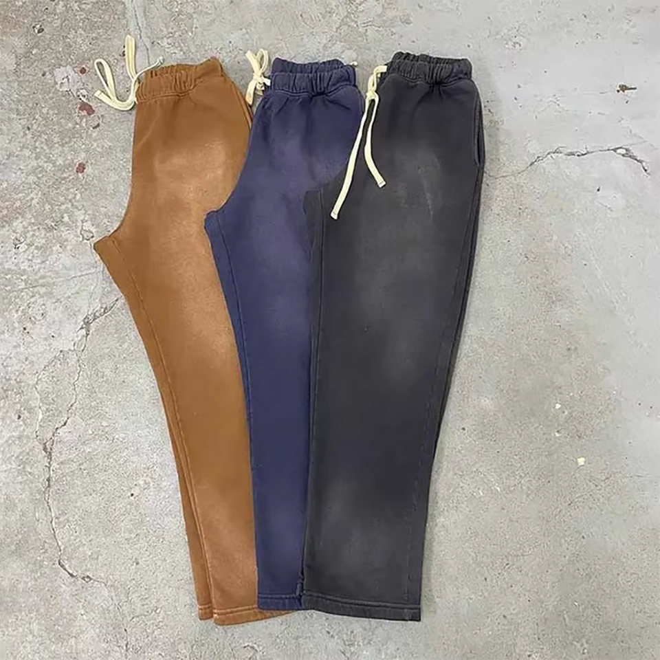 กางเกงลำลองทรงหลวมเอวกลางผ้าฝ้ายคุณภาพสูง ซักย้อมแบบแอซิดวอช เป็นมิตรต่อสิ่งแวดล้อม สำหรับผู้ชาย ดีไซน์ใหม่ทันสมัย สวมใส่สบายทุกวัน