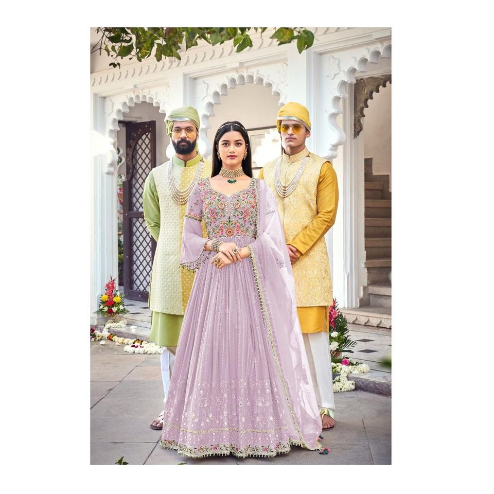 โพลีเอสเตอร์ผ้าฝ้ายคุณภาพสูงและผ้าไหมผู้หญิง Anarkali ชุดสำหรับงานแต่งงานและงานปาร์ตี้สวมใส่ในราคาขายส่งจากอินเดีย
