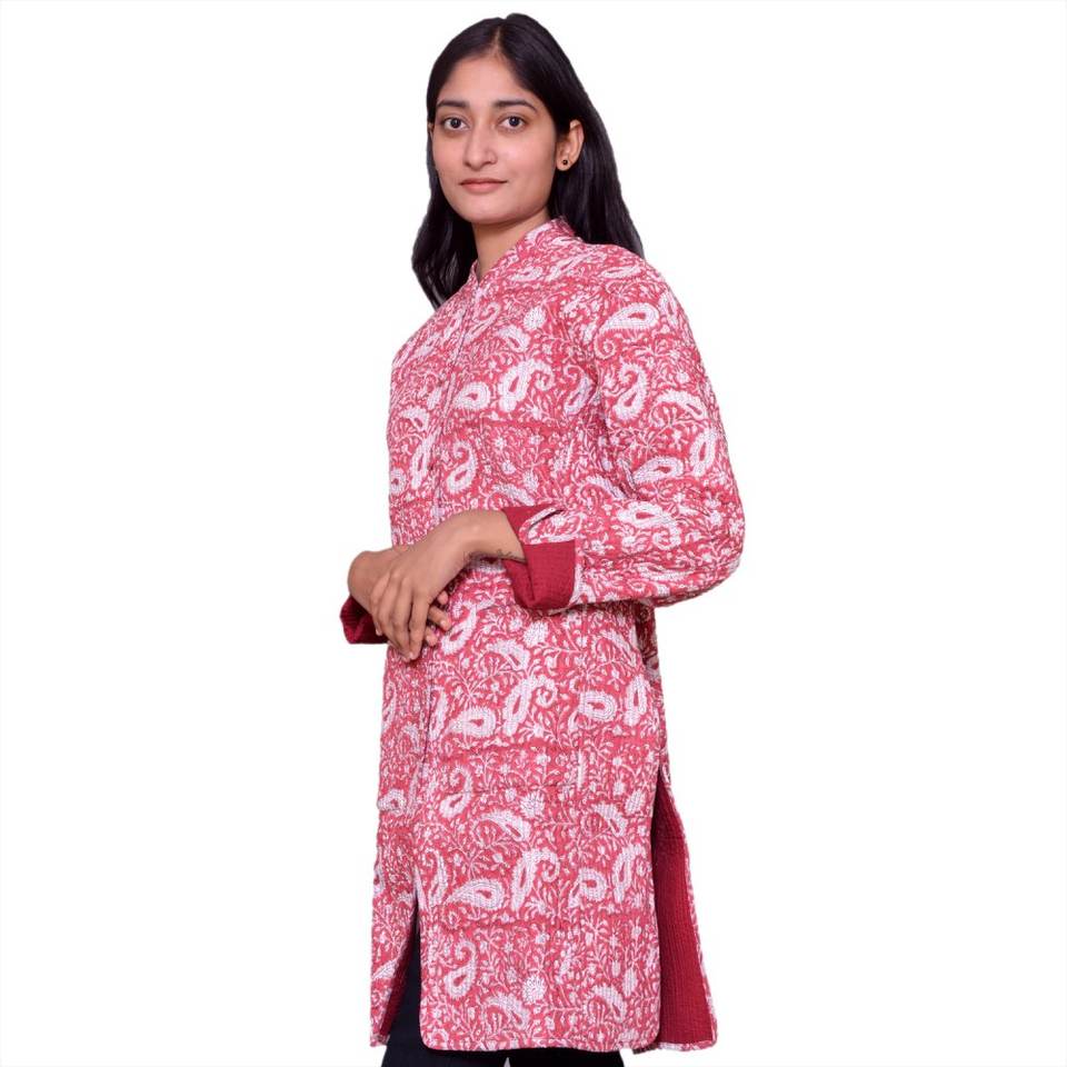เสื้อแจ็คเก็ตผ้าฝ้ายคุณภาพสูง ลายพิมพ์บล็อกด้วยมือ บุด้วยผ้าฝ้ายเนื้อนุ่ม เสื้อแจ็คเก็ตผ้าฝ้ายสำหรับผู้หญิง ราคาถูกที่สุด