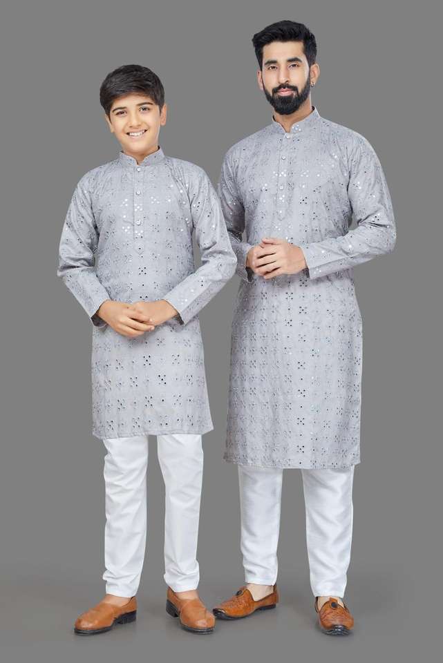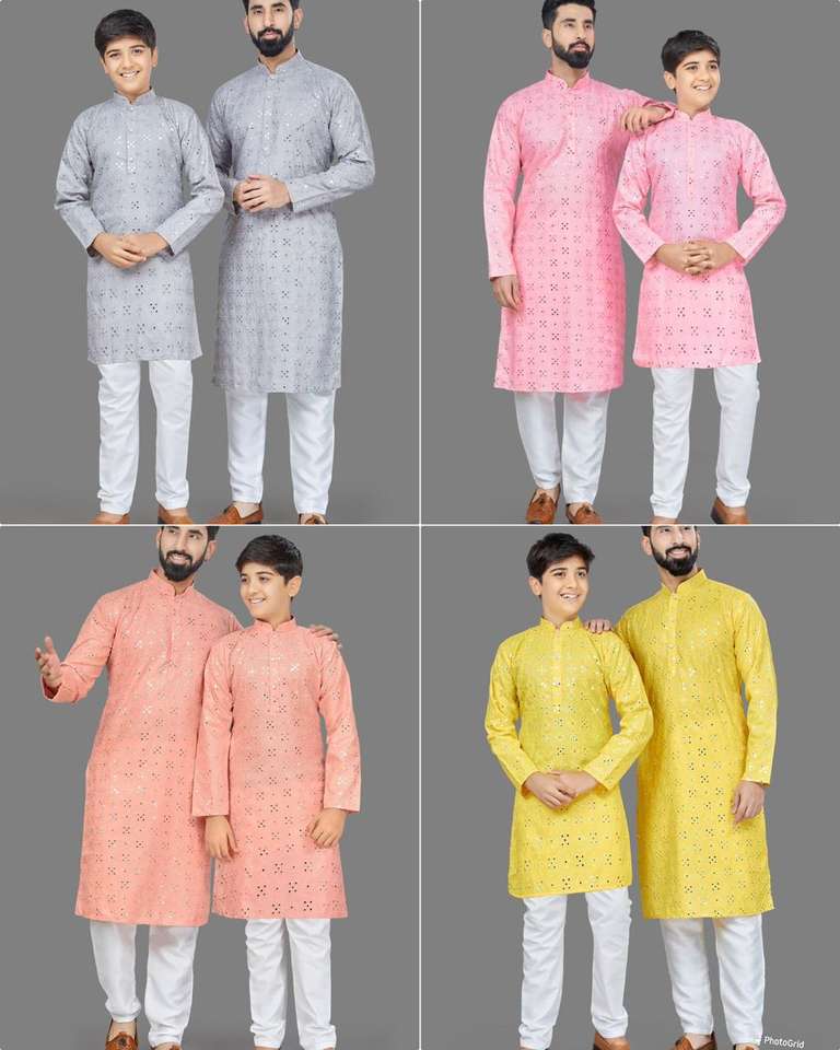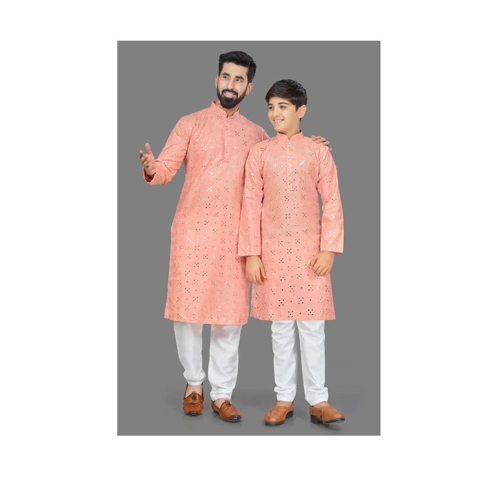 Top Quality Cotton with Heavy Embroidery Mirror Work Father and Son Designer Mirror Kurta with Pajama