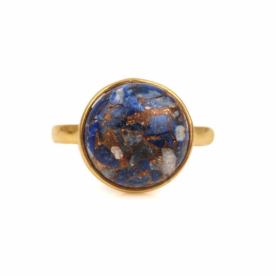 แหวนเงินแท้925คุณภาพสูงทำด้วยมือแบบคลาสสิก Lapis Lazuli ทองแดงฝาอัญมณีชุบทอง-สำหรับปาร์ตี้