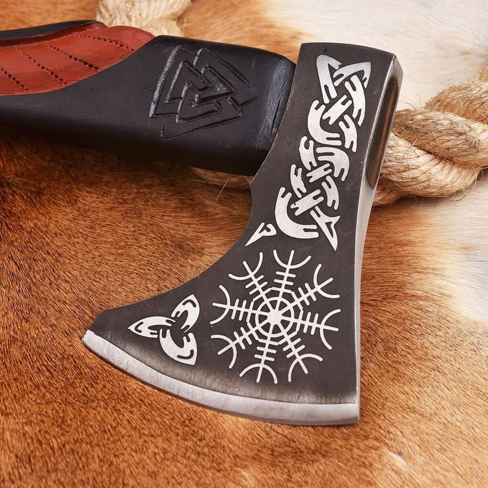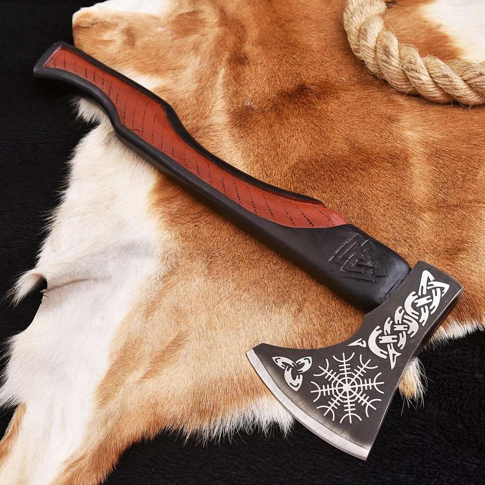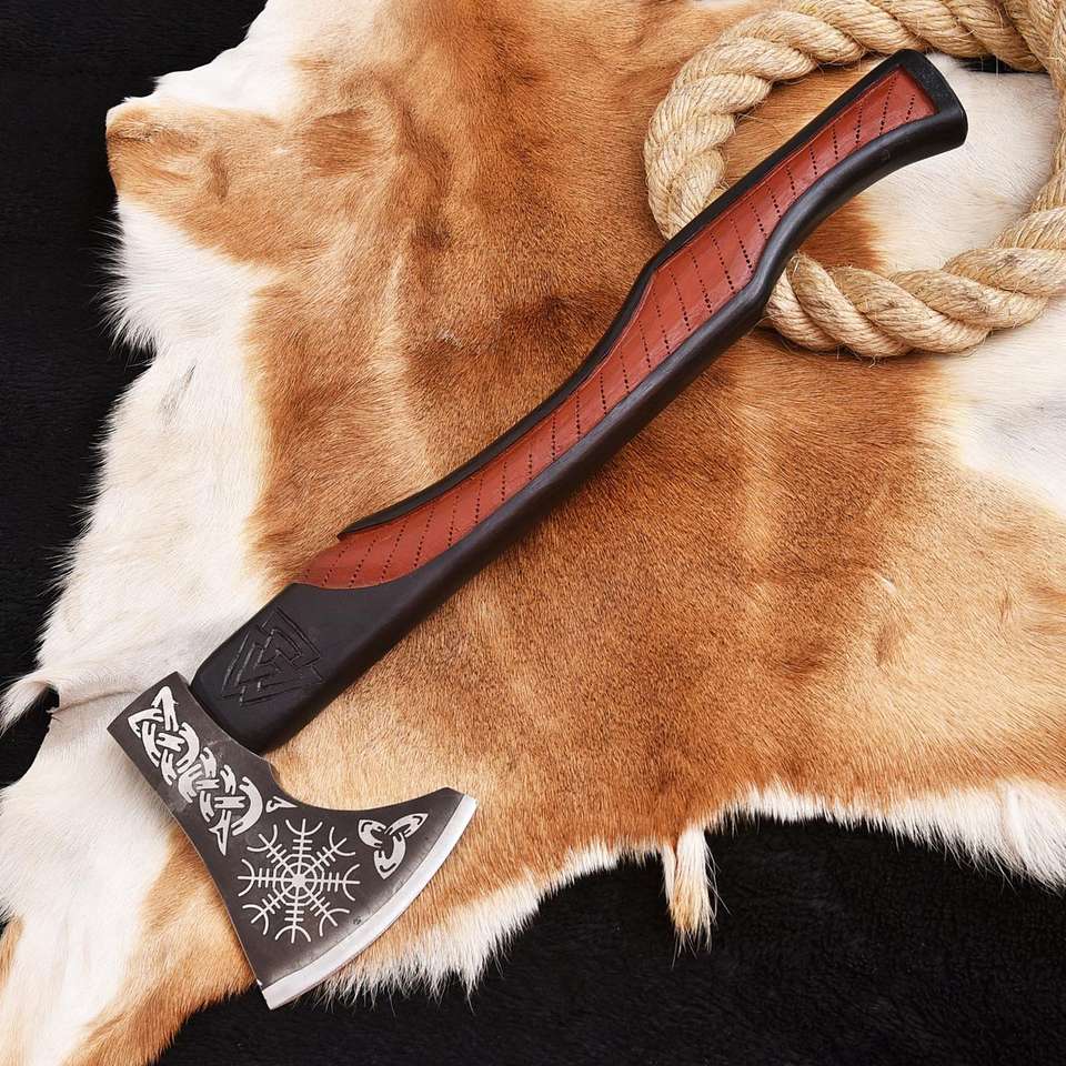 ขวานเหล็กกล้าคาร์บอนคุณภาพสูง งานแฮนด์เมด ขวานเอาตัวรอดสำหรับกิจกรรมกลางแจ้ง พร้อมด้ามไม้เนื้อแข็ง