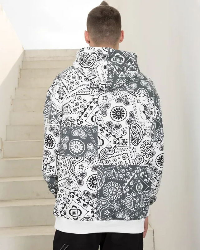 คุณภาพสูงโลโก้ที่กําหนดเองที่กําหนดเองผ้าพันคอHoodies Paisleyพิมพ์Patchwork USAขนาดผู้ชายHoodie Casualเสื้อขนแกะเสื้อผ้า