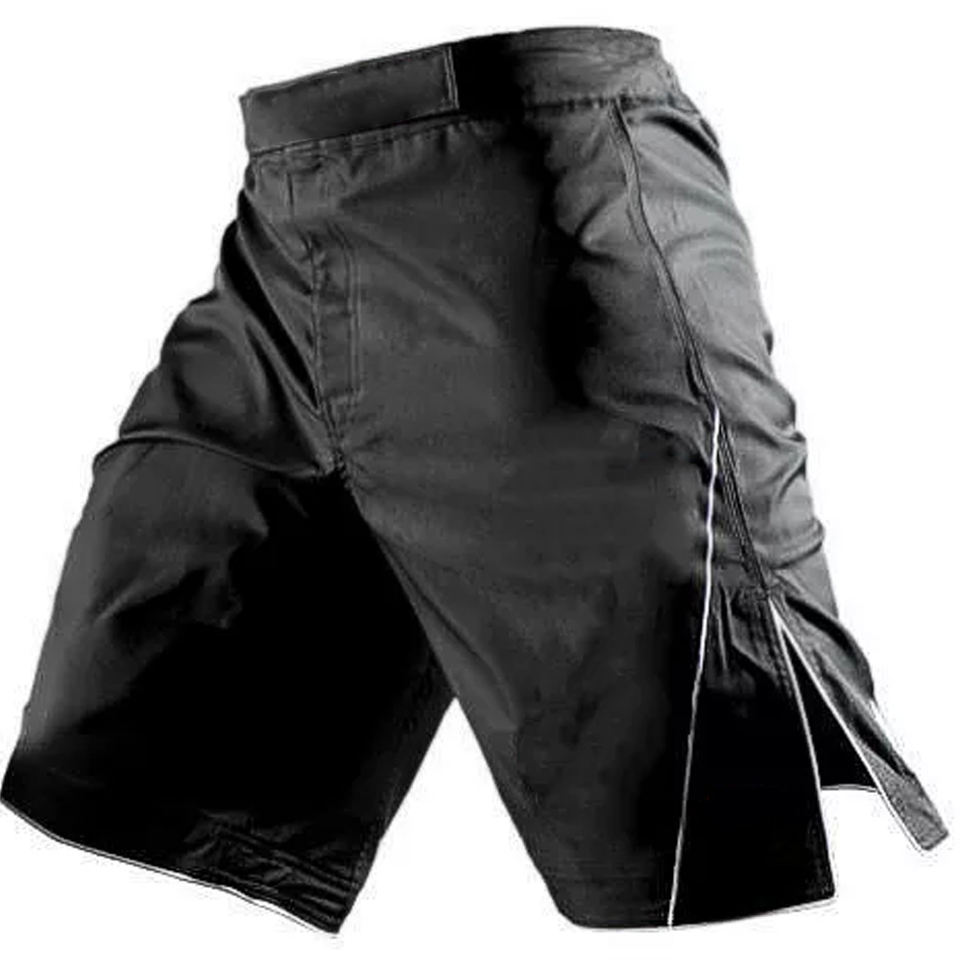 กางเกงขาสั้น MMA สีดำขาวดำแบบสั้น Jitsu Jitsu สำหรับฝึกซ้อมต่อยมวยชุดกิโมโนโลโก้ออกแบบได้ตามที่ต้องการ