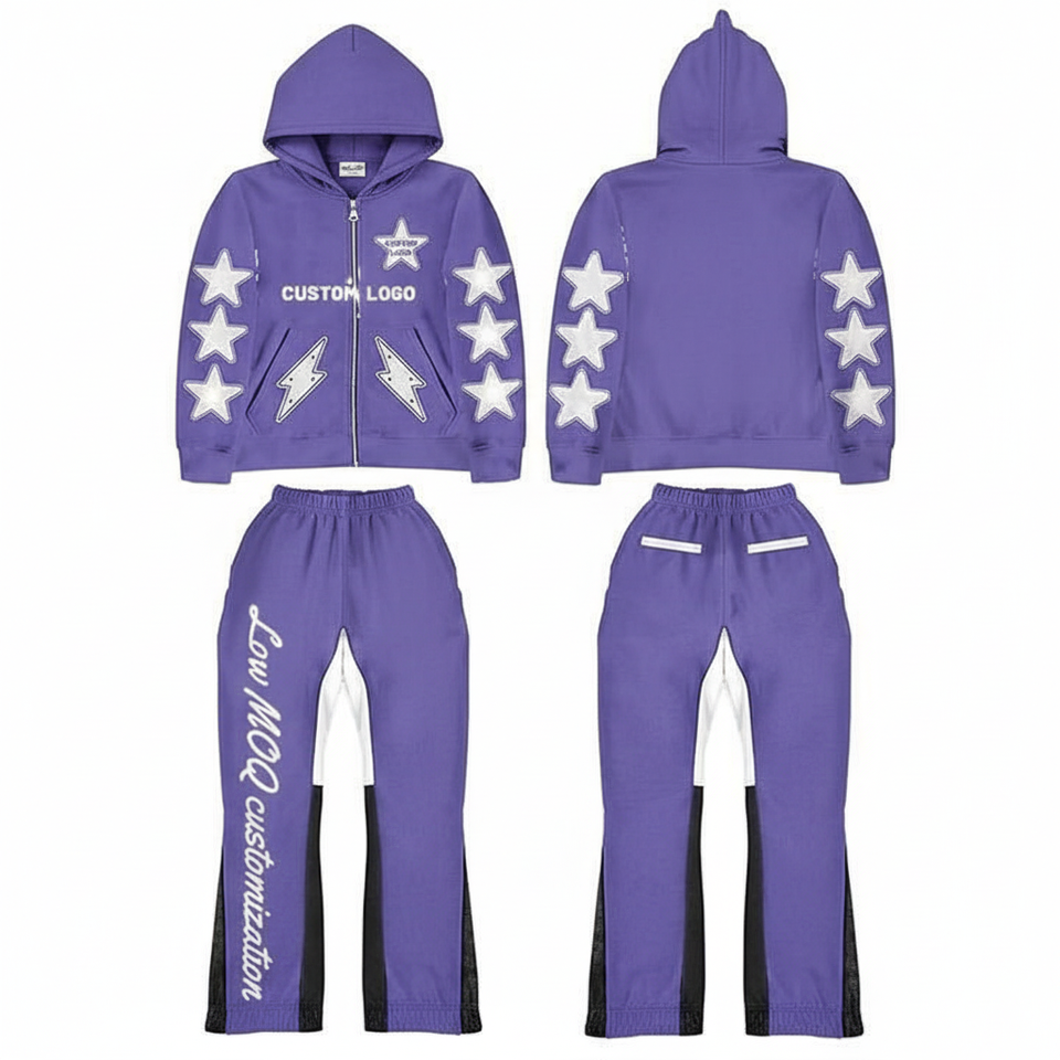 ชุดเสื้อฮู้ดและกางเกงวอร์มสำหรับผู้ชายชุดวอร์มแบบเต็มซิปล้างเหงื่อแบบกำหนดเองโลโก้ได้