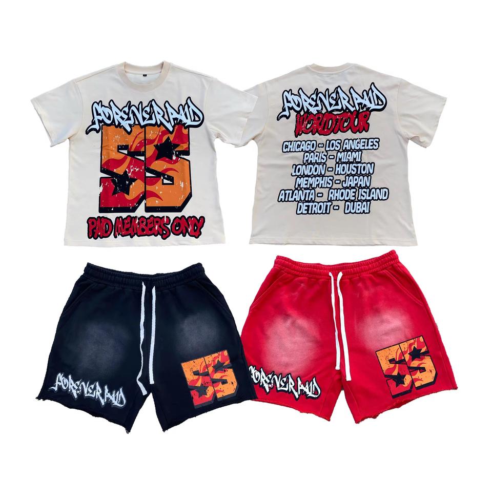 ชุด2ชิ้นแบบลำลองสำหรับฤดูร้อนเสื้อยืดครอปสีพื้นป้องกันการหดตัวระบายอากาศ