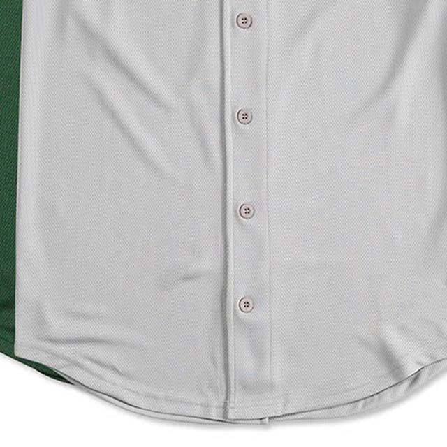 เสื้อเบสบอลผ้าเจอร์ซีย์สีเขียวและสีขาวใส่เล่นซอฟต์บอลใส่สบาย