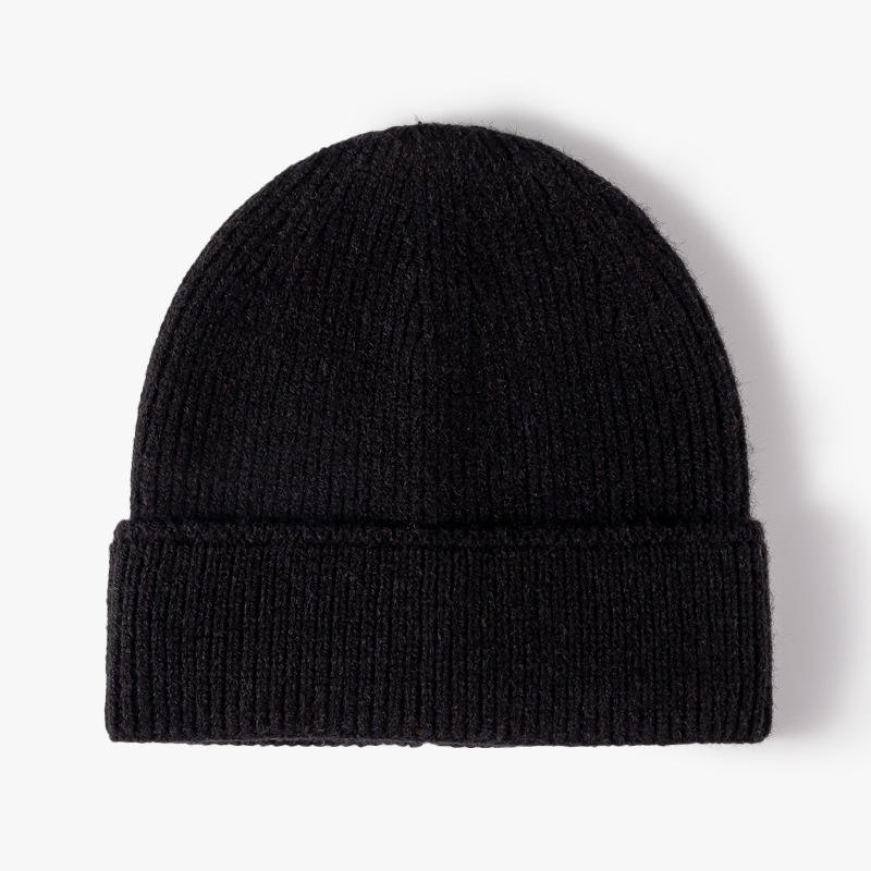 หมวกถักแบบมัดแขนสำหรับผู้ชายหมวกผ้าถักสำหรับฤดูหนาวหมวกบีนนี่ปักสีทึบใส่ได้ทั้งชายและหญิง