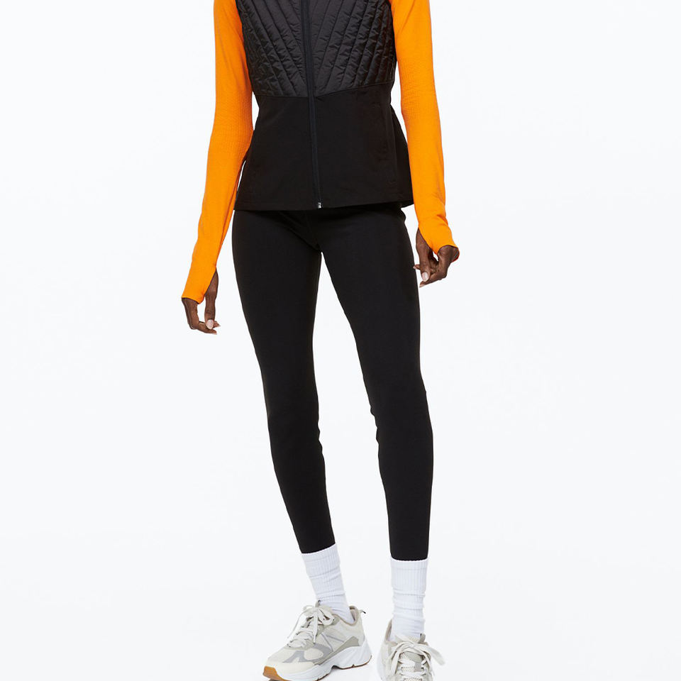 ชุดเล่นโยคะ2ชิ้นชุดออกกำลังกายเอวสูงชุดออกกำลังกายแบบถักพร้อมโลโก้ที่เอว