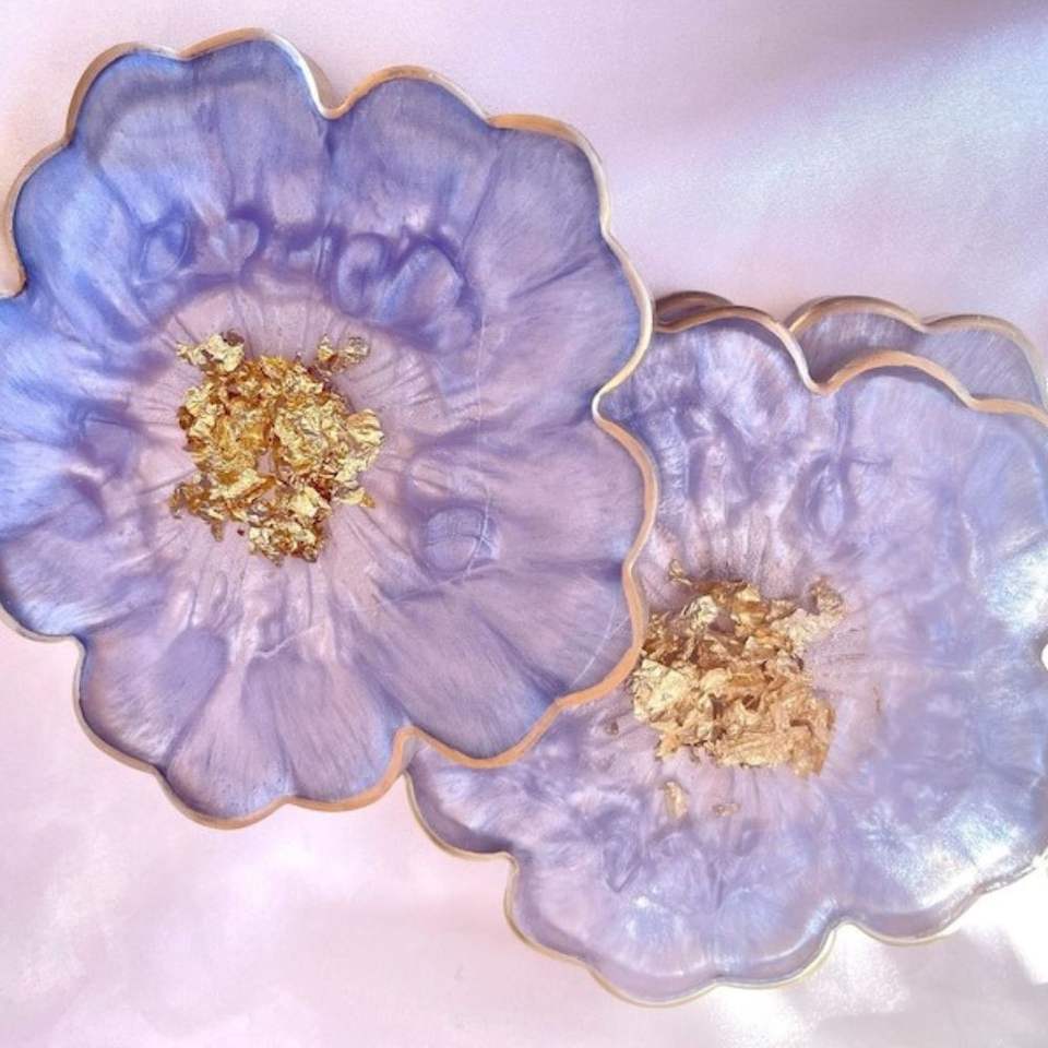 ที่รองแก้วทำจากเรซินอีพ็อกซี่ทรงกลมทำจากไม้ทรงสี่เหลี่ยมพร้อมที่จับสำหรับใส่เบียร์ชากาแฟ