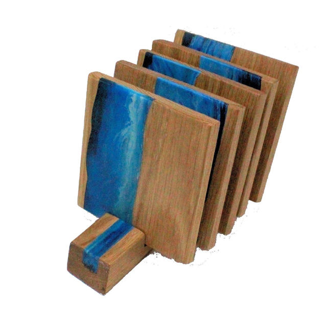 ชุดจานรองแก้วเรซิ่นไม้ทรงสี่เหลี่ยมและทรงกลมคุณภาพสูง พร้อมที่วาง 5 ชิ้น ดีไซน์ทันสมัย