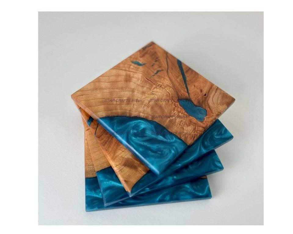 ที่รองแก้วทำจากไม้อีพ็อกซี่ทรงสี่เหลี่ยมทรงกลมพร้อมชุดยึดสำหรับสำนักงานและบ้านจาก SCI