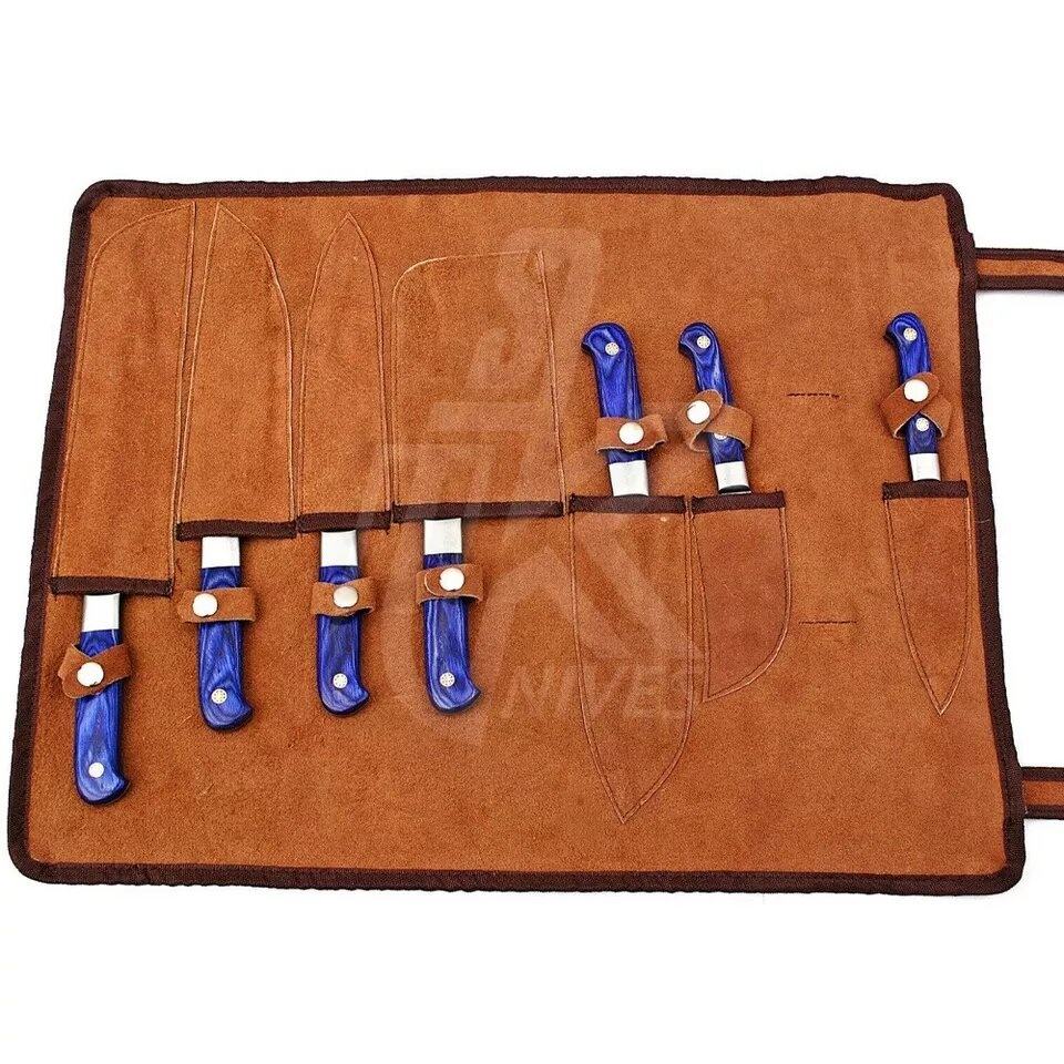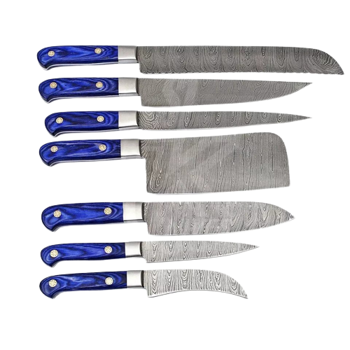 ชุดมีดเชฟเหล็กดามัสกัสทำมือคุณภาพสูงมีดโลหะคมพร้อมที่หุ้มด้ามไม้ pakka ชุดมีดแบบกำหนดเองสำหรับใช้ในครัว