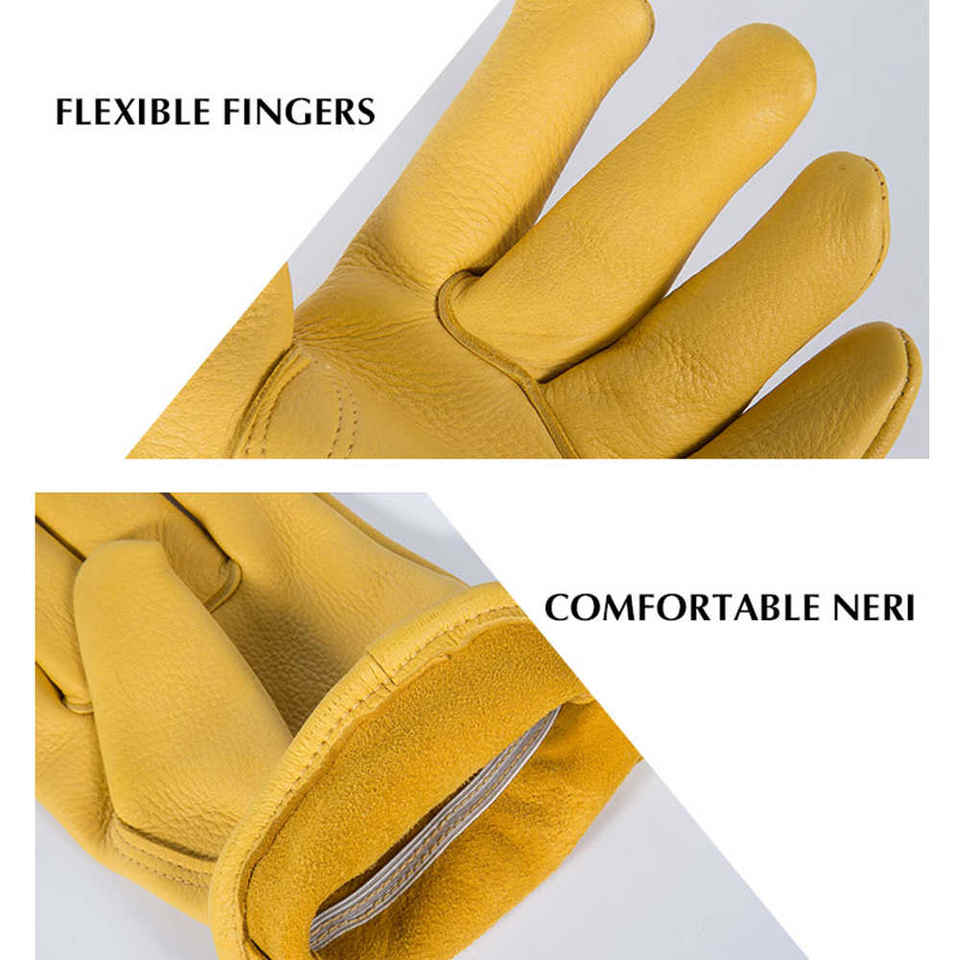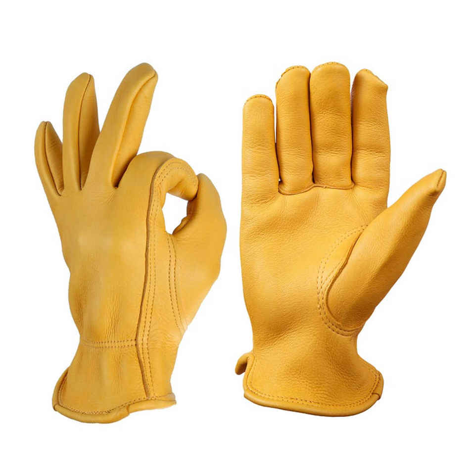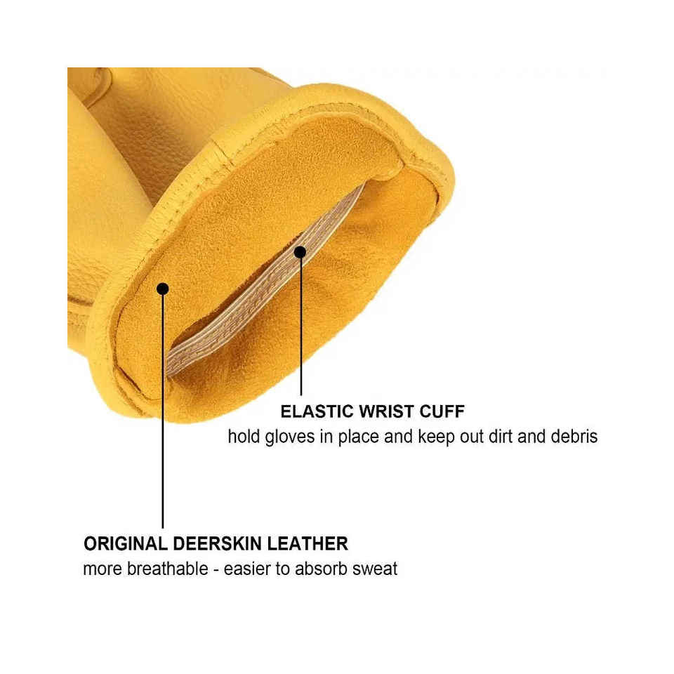 ถุงมือทำงานหนังกวางคุณภาพสูง ทนทาน ป้องกันการบาดจากปืน พร้อมที่ป้องกันนิ้วหัวแม่มือแบบ Keystone ข้อมือยืดหยุ่น สำหรับทำงานและขับรถ