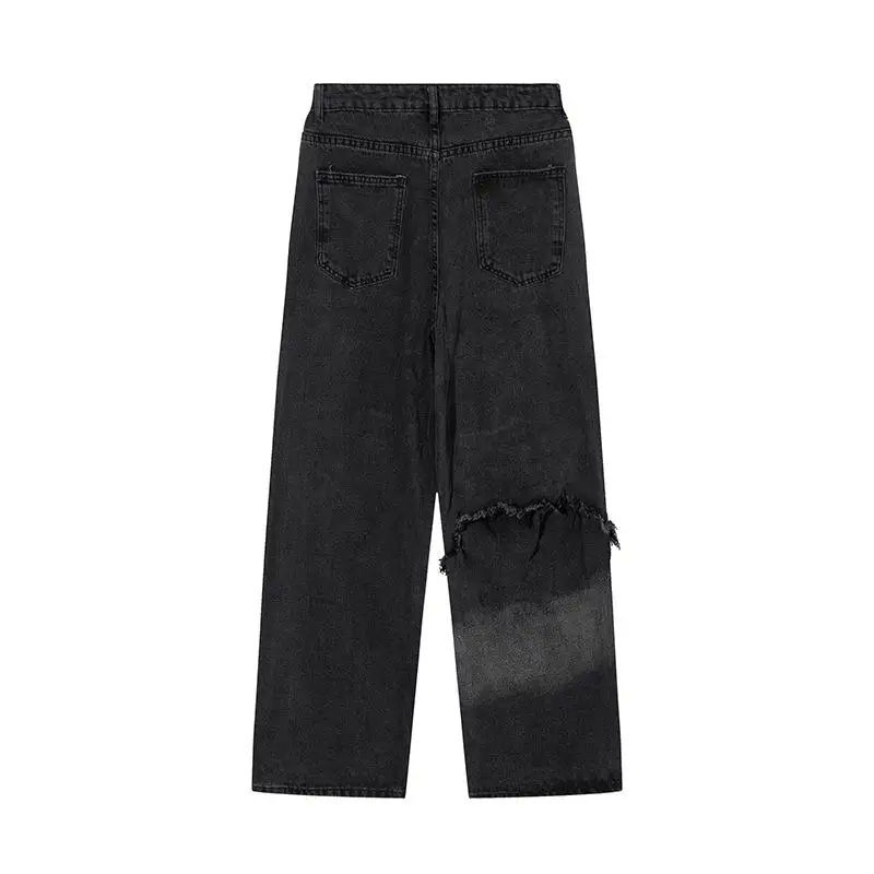กางเกงยีนส์เดนิมคุณภาพสูงทรงหลวม สไตล์สตรีท ระบายอากาศได้ดี ปรับแต่งได้ เหมาะสำหรับฤดูร้อนและฤดูใบไม้ร่วง กางเกงยีนส์เดนิมทรงหลวมขายส่งแบบซักล้าง