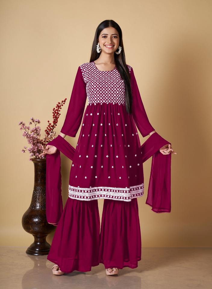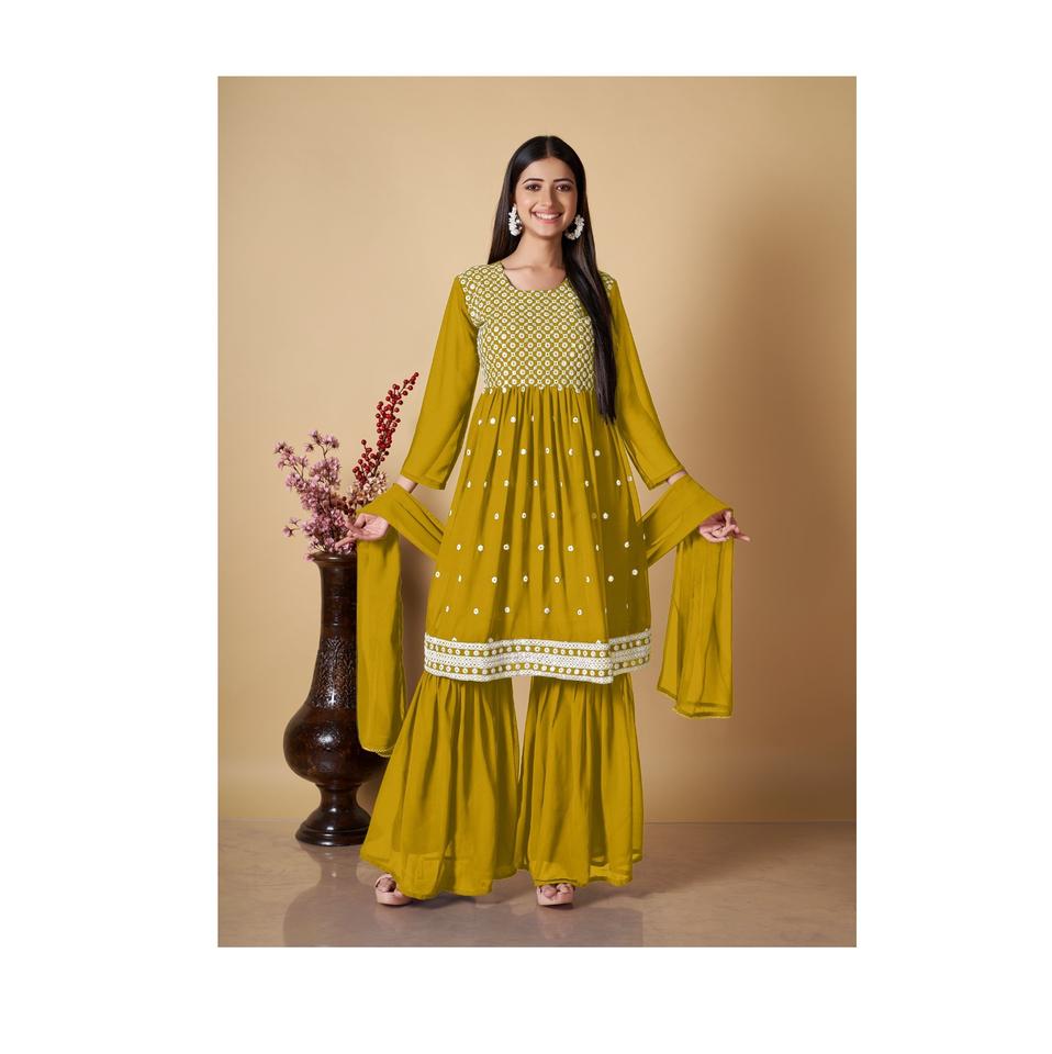 งานปักที่มีคุณภาพสูงและมีลำดับ Sharara Kurti กับ Dupatta สำหรับผู้หญิง