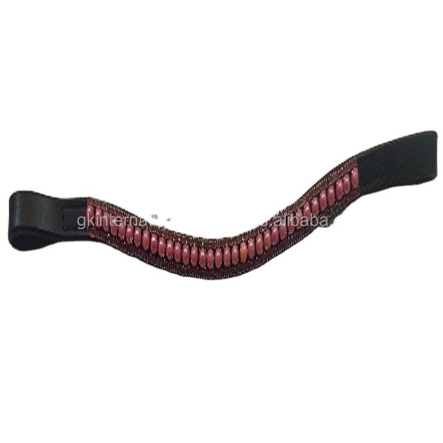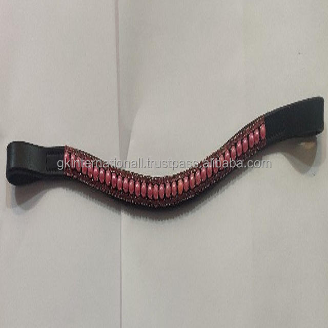 สายรัดคิ้วม้าหนังแท้ทรงโค้ง,สายหนังประดับคริสตัลและไข่มุกสีชมพู