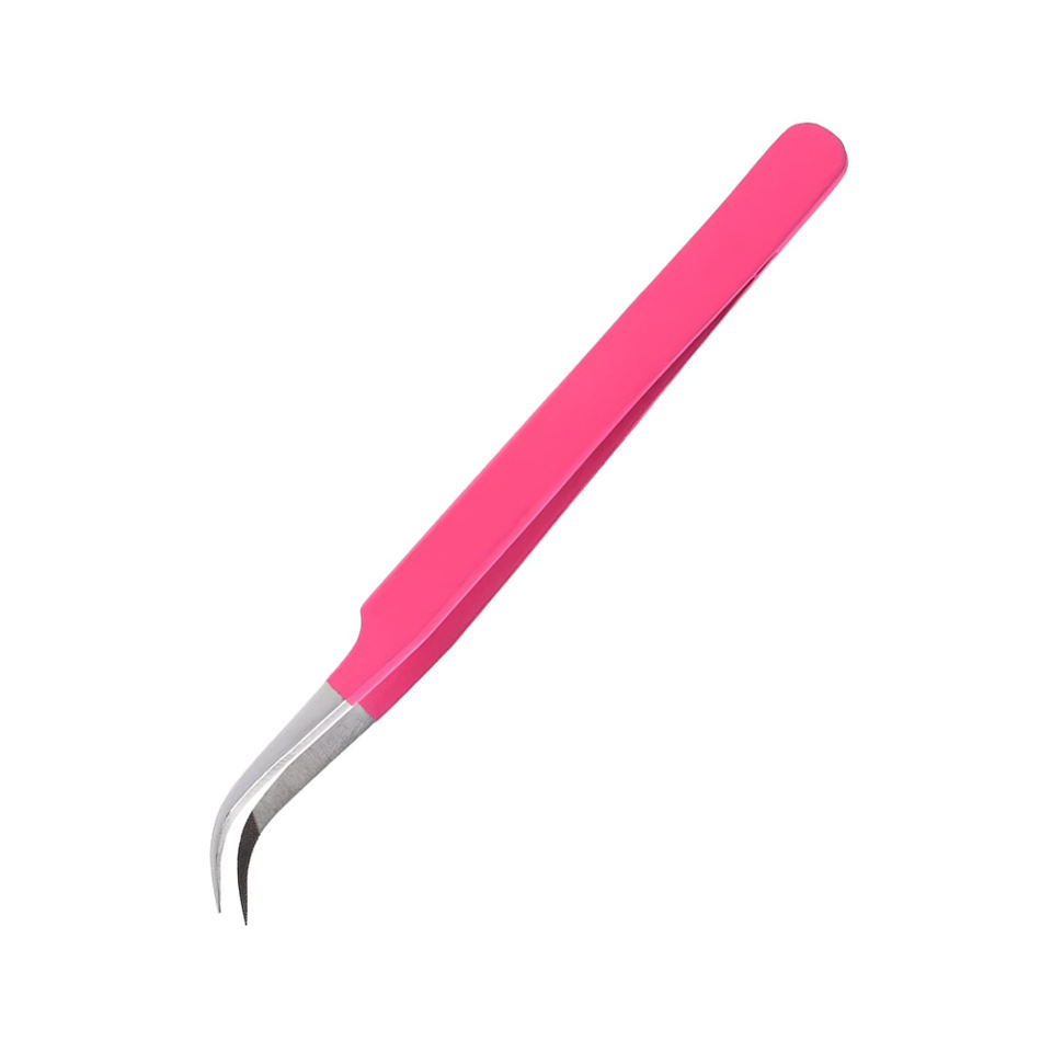 แหนบต่อขนตาคุณภาพสูง ด้ามจับเคลือบสีชมพู สแตนเลส ปลายแหลมเฉียง ด้ามจับเรียบ